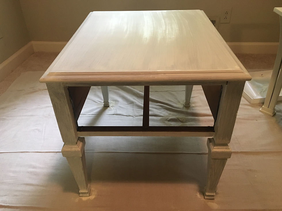 Since my sofa and chair are only a year old, I examined the color palette of its fabric and decorative pillows to determine what the new color should be for my end table... All I knew is that it should be lighter, and timeless.